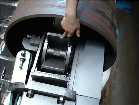 1.鋼管內壁清理機在工作時將需要清理的鋼管置于專用托架機構上進行噴丸清理,這個托架機構我們經過了無數次的試驗和改進,很大程度的提高了鋼管的清理效率和清理效果。