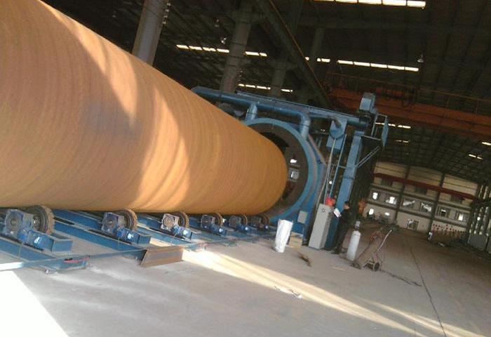 設(shè)備主要是采用電機帶動高速旋轉(zhuǎn)的葉輪拋射鋼丸到鋼管表面,利用鋼丸強大的離心力擊打表面;
